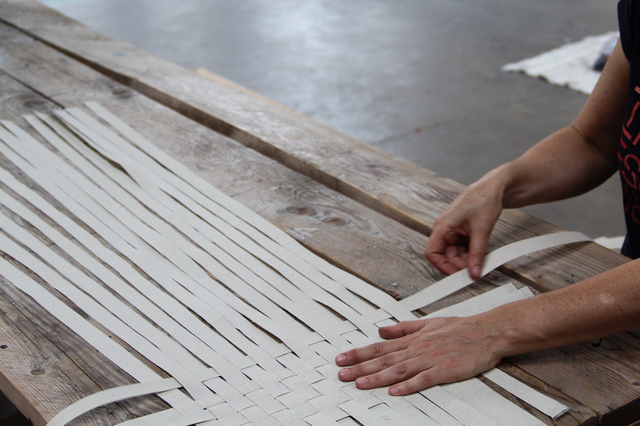 La Fibre propose une initiation à la pratique du tissage de bâches en plastique et tissus imperméables collectés par l’association.Chaque passant pourra participer à la fabrication d’objets originaux visant à occulter la lumière sous forme de pergola attenante aux containers, paravents, parasols… Tant qu’il y aura de la matière et des passants, il y aura de la création.