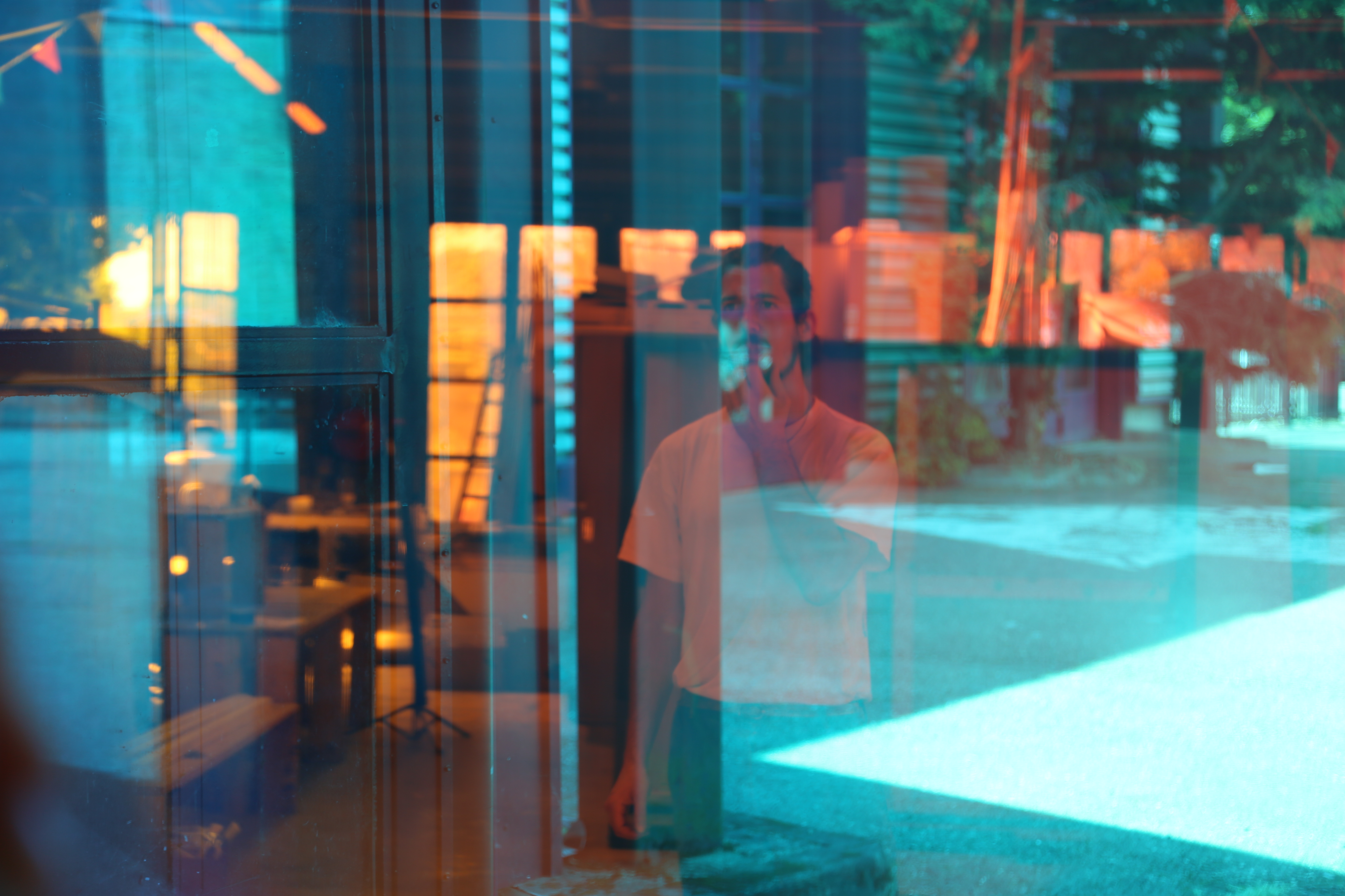 La Grande Serre a accueilli pendant le mois de juillet Paolo Morvan et Jules Bouit, qui ont travaillé à la construction de la scénographie du live “Bain de minuit” de l’artiste musicien Romain Muller. Pour accompagner les morceaux de l’interprète, à mi-chemin entre le synthé-pop, la chanson française, et l’électronique, le scénographe Paolo Morvan et le menuisier Jules Bouit ont créé un système de cloisons inspirés des paravents japonais. Leur projet est un jeu avec la lumière, le public et le musicien, grâce à un système de cloisons plus ou moins opaques.
