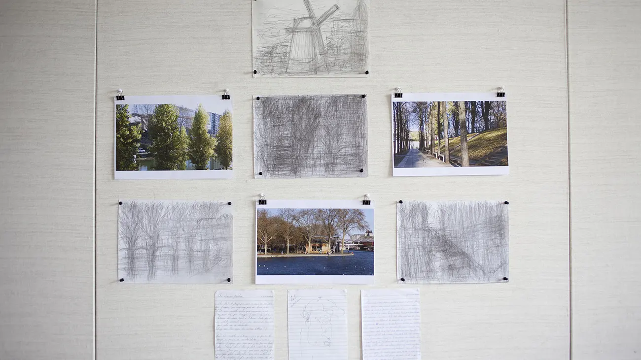 Son travail porte sur la narration, la recherche de mémoire individuelle et collective, la création de récits, les cabanes et la poésie située. Sa démarche l'amène par l'expérimentation et la recherche-création à creuser les mots, porter une voix à nos paysages, à la rivière, à celui à qui on ne parle pas, tisser nos espaces de partage, de discussion et de lutte dans une attention toujours constante à ce qui est en train d'advenir.