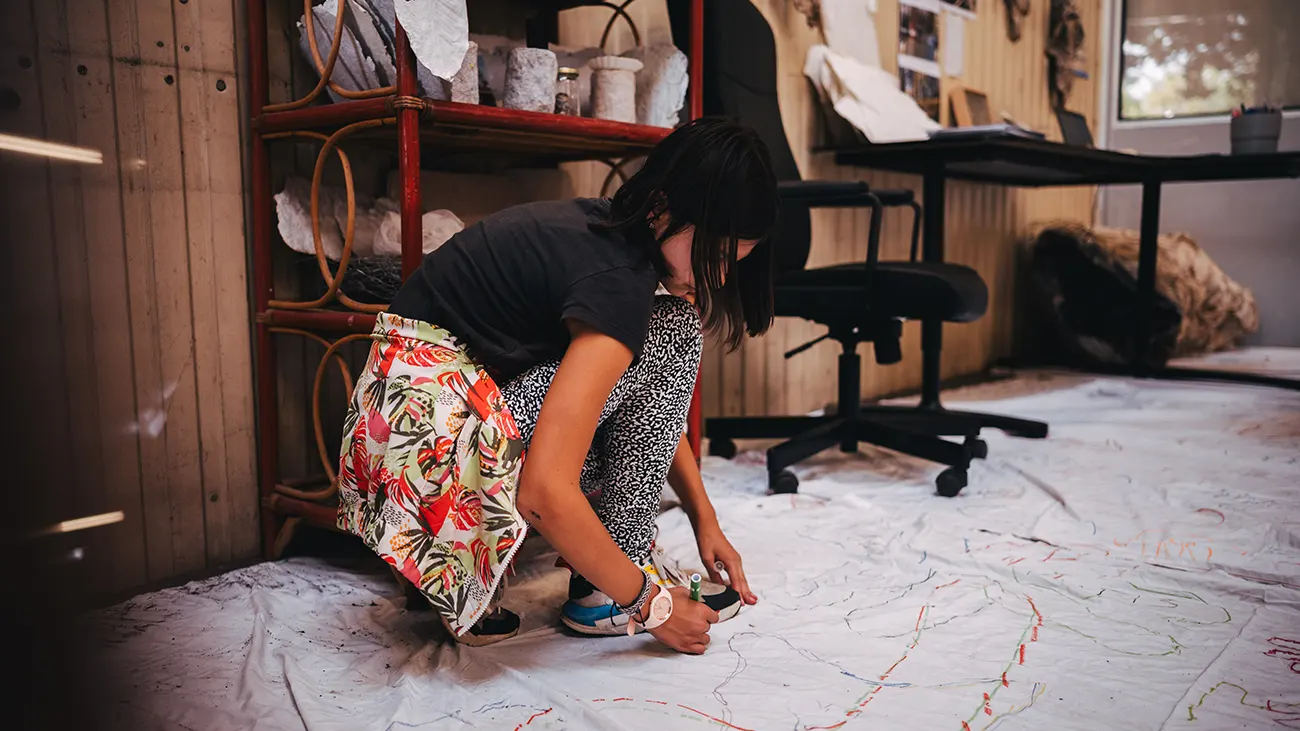 Il prend principalement forme dans des installations immersives in situ, des co-créations, des ateliers participatifs/collectifs et des protocoles. Elle s’intéresse aux notions d’écologie comme Oïkos (penser la Terre comme maison commune), l'intime et l'extime, le lien aux autres humains et autres qu'humains, le langage et l'écriture, la façon dont nous sommes à même d'imaginer de nouvelles mythologies ou encore le faire ensemble. Sa pratique concentre plusieurs médiums et techniques qui s'adaptent au propos de l'œuvre. Elle pratique régulièrement le numérique, notamment sous forme de vidéos et de mapping dans ses installations.